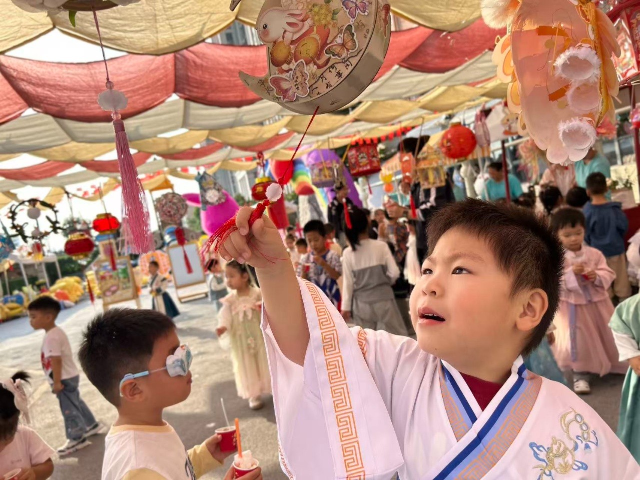节日的气氛,浓郁地弥漫在幼儿园里。孩子们在丰富多彩的活动,全方位探寻中秋韵味。