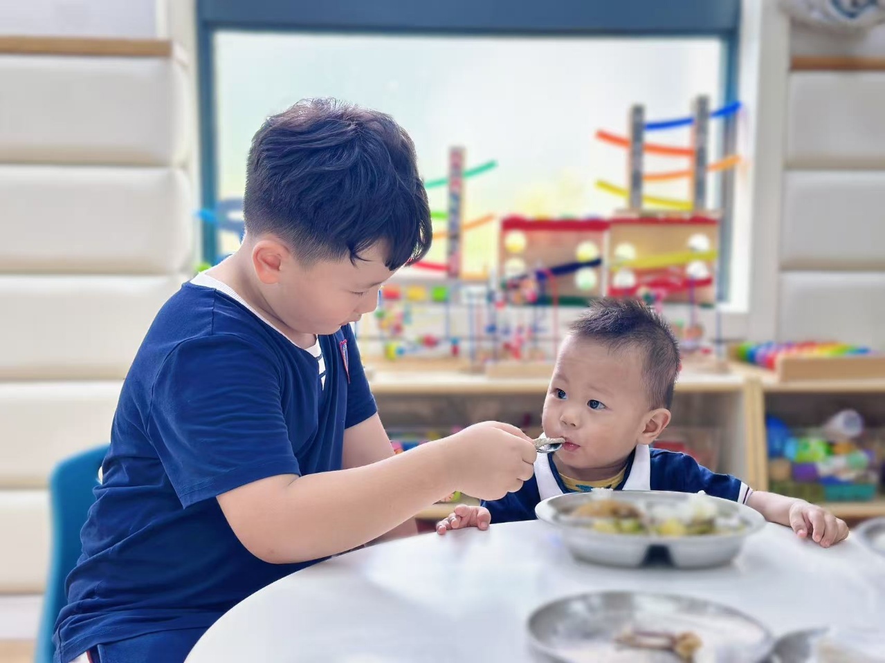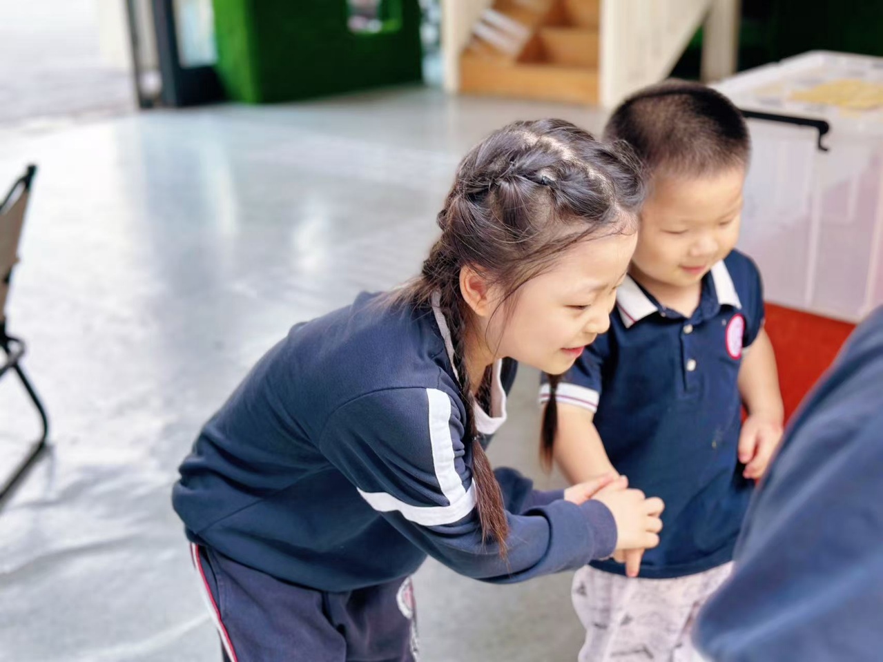 哥哥姐姐的陪伴,像一束光,驱散了他们对新环境的不安与焦虑。他们感受到了家的温暖,更快地融入了幼儿园这个快乐的集体。