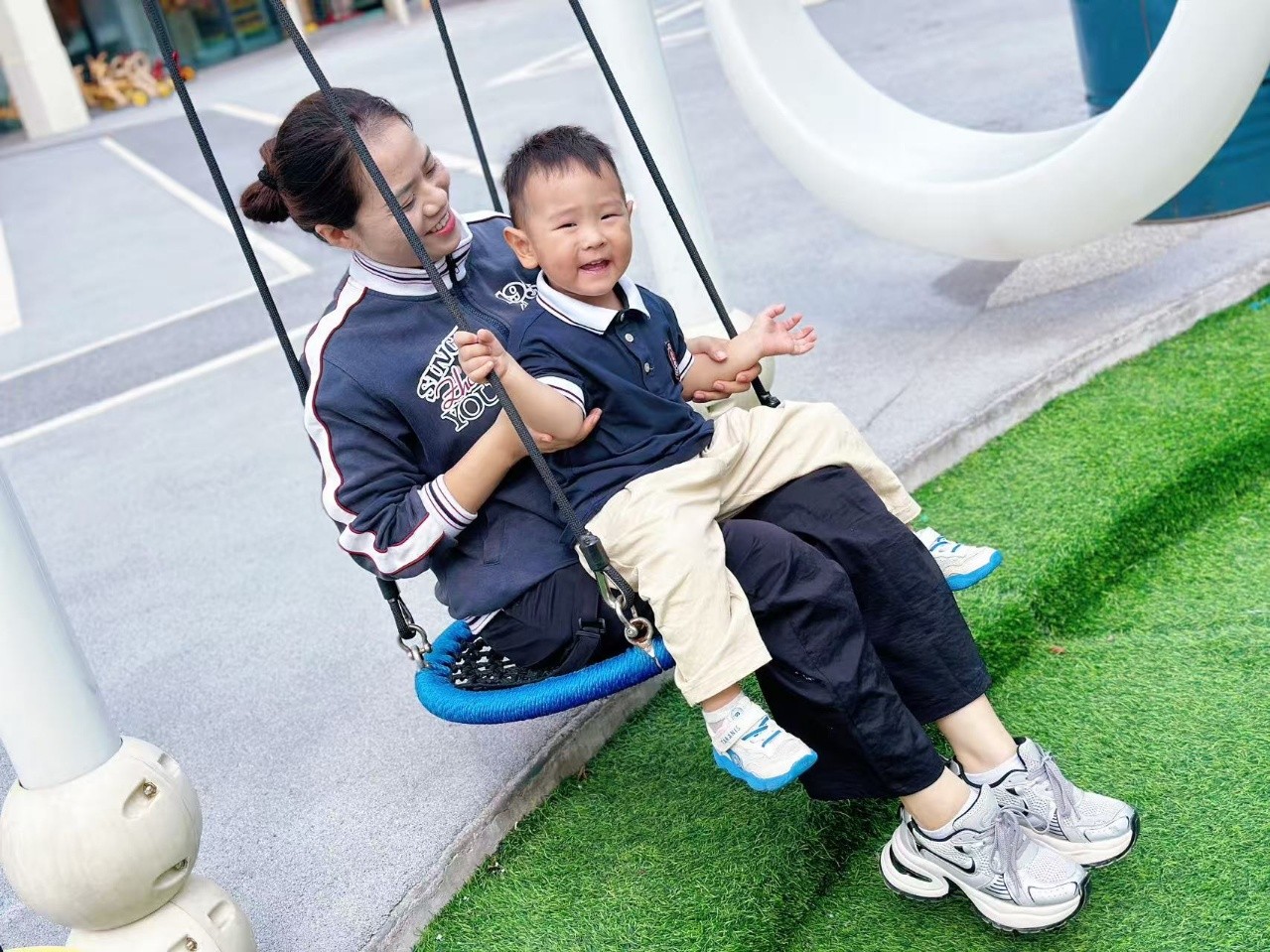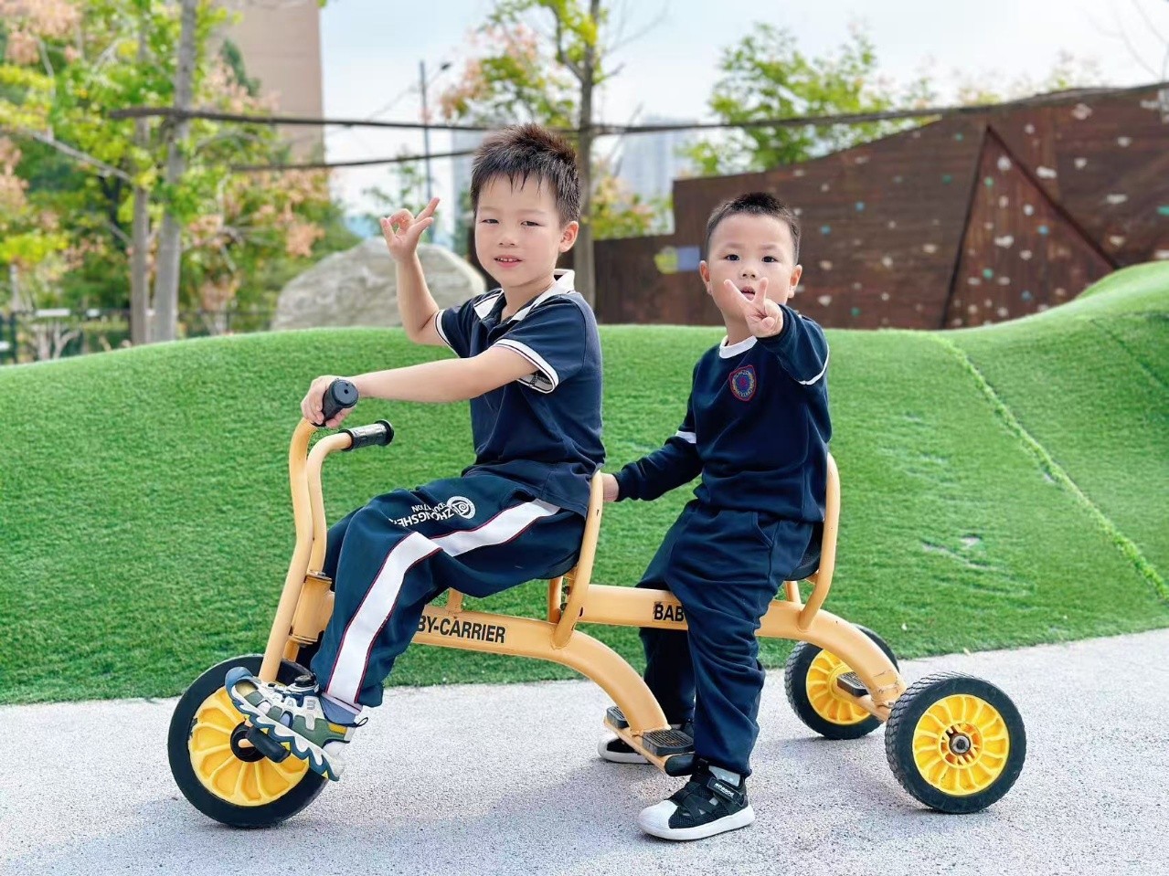 户外共探险:滑滑梯、骑小车……有哥哥姐姐在身旁保护,弟弟妹妹玩得更安心、更尽兴了!