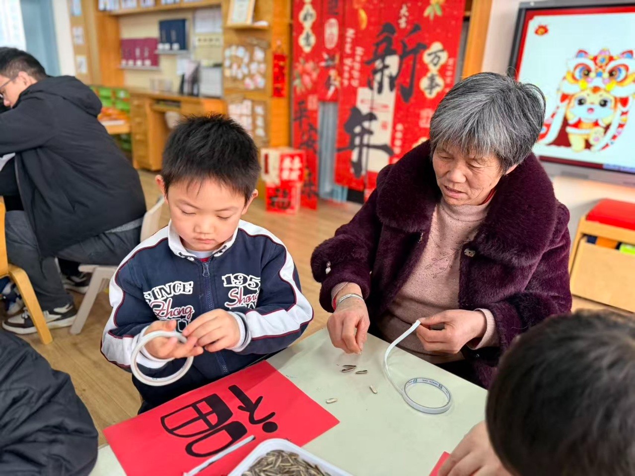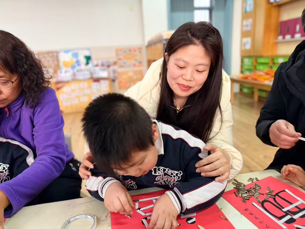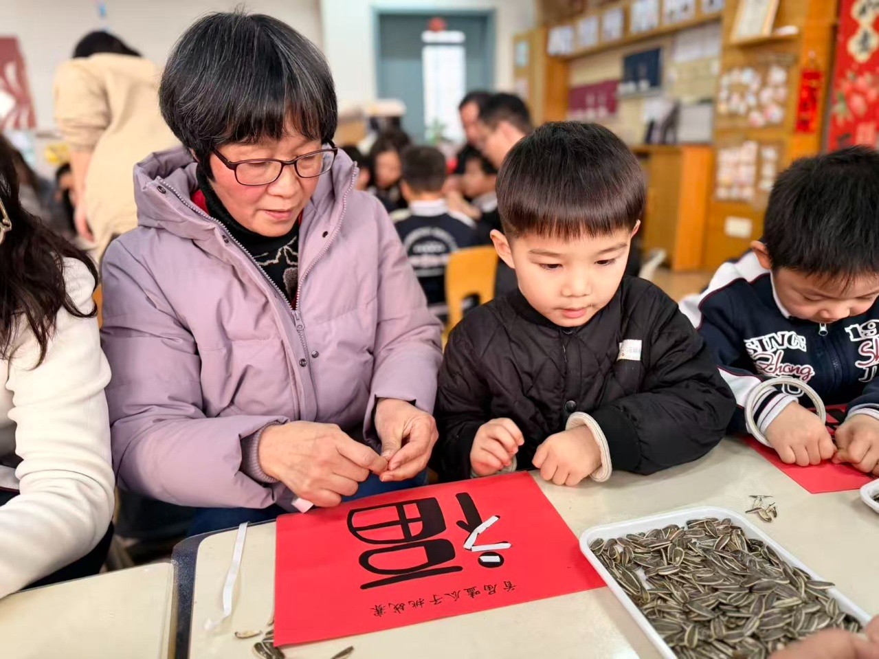 活动结束后,孩子们带着满脸的笑容和满口袋的瓜子仁回家。那个大大的“福”字,被老师小心地收起来,贴在教室最显眼的地方。那份用心,那份陪伴,那份共同的完成,才是这个活动真正的意义。