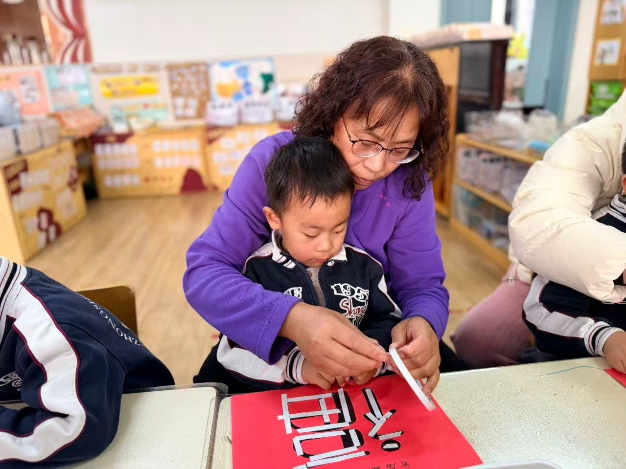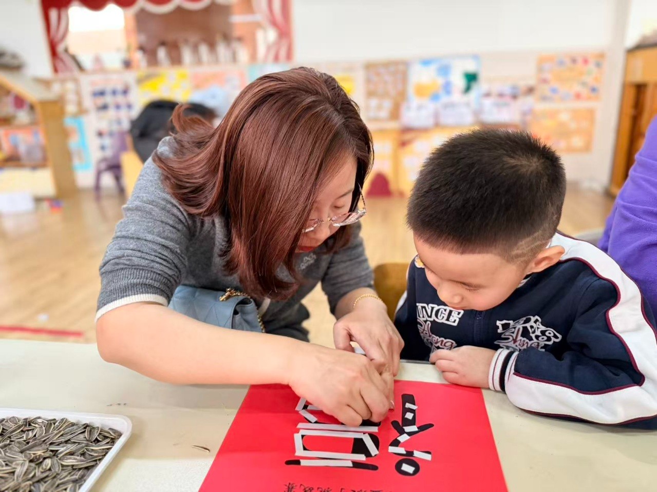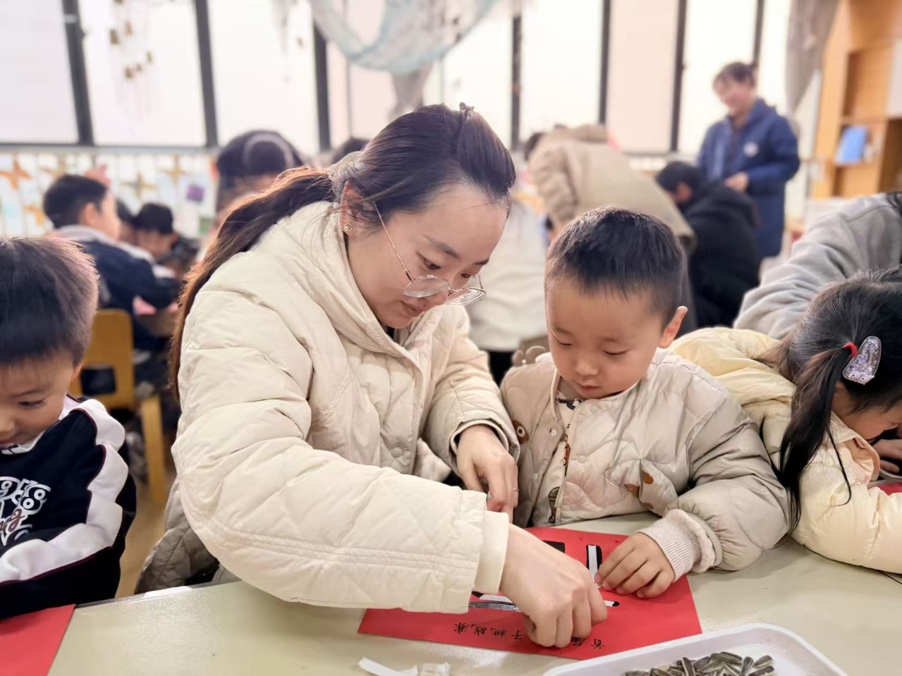 活动结束后,孩子们带着满脸的笑容和满口袋的瓜子仁回家。那个大大的“福”字,被老师小心地收起来,贴在教室最显眼的地方。那份用心,那份陪伴,那份共同的完成,才是这个活动真正的意义。