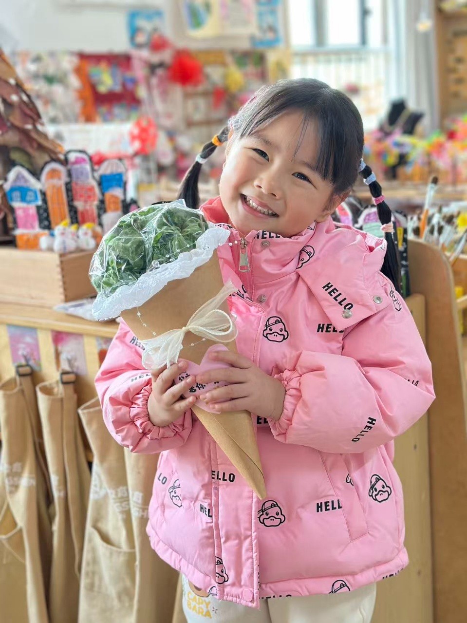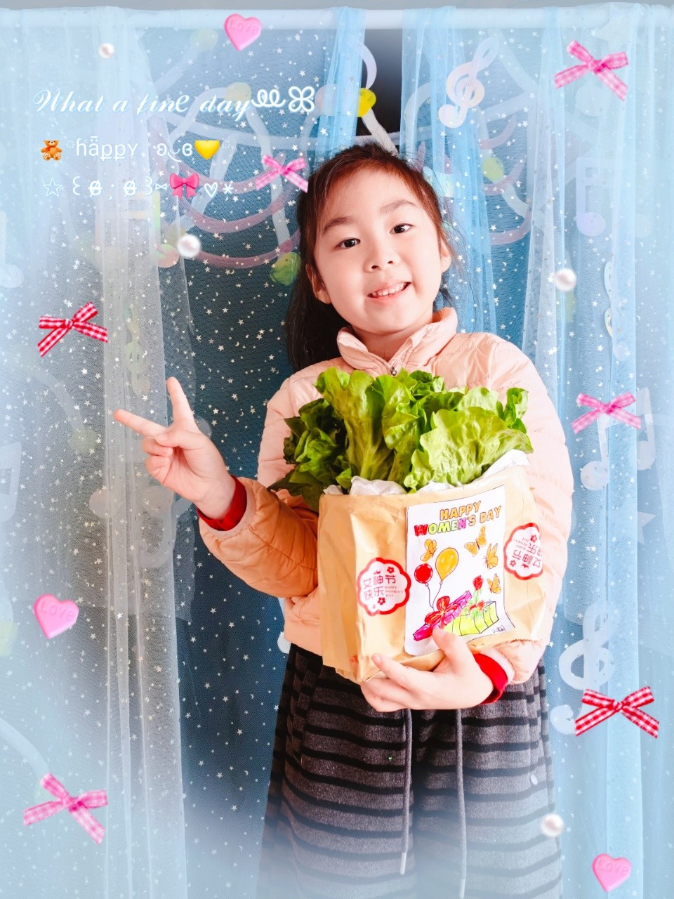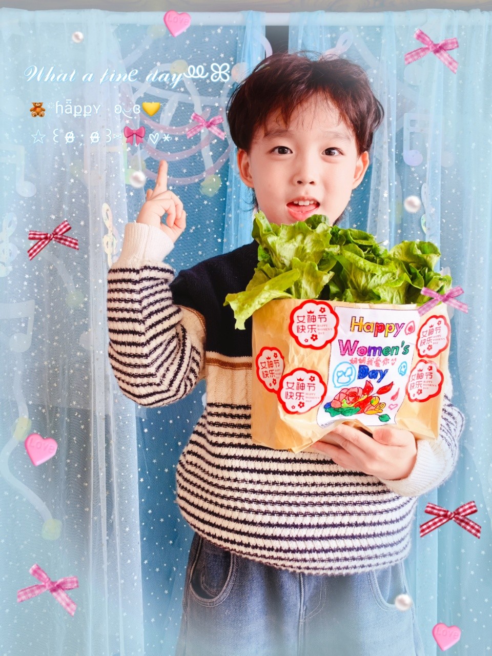 生菜谐音“生财”,寓意吉祥;绿色代表着健康与生机。孩子们用最质朴的生菜,包出了最真挚的祝福——愿妈妈、奶奶、外婆们健康常伴,美丽常在!