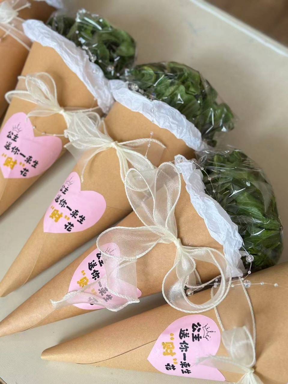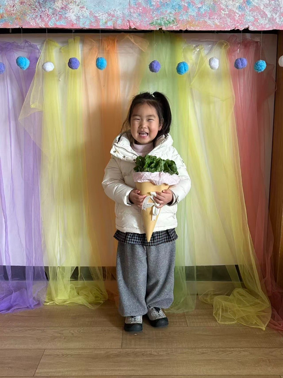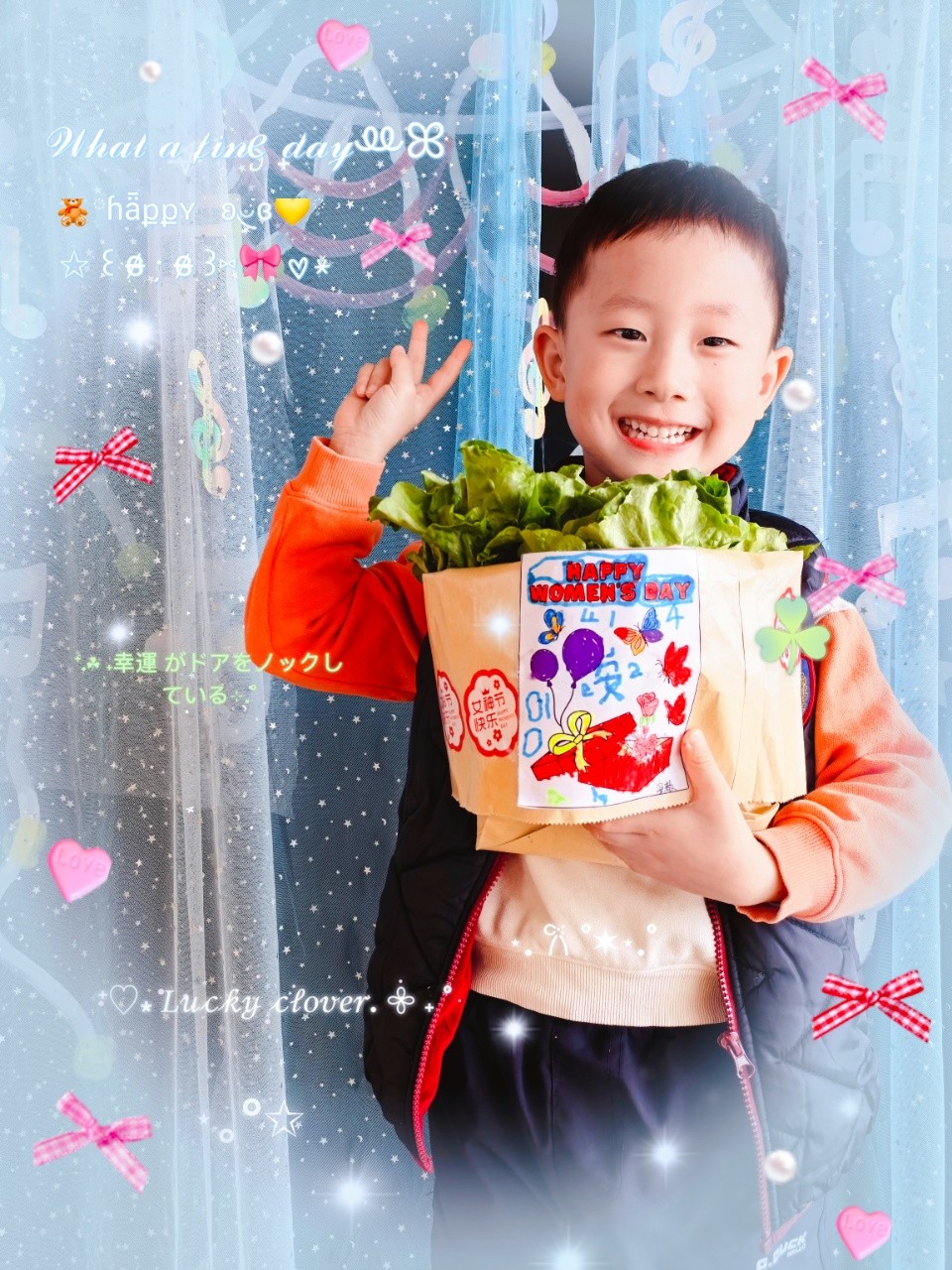 生菜谐音“生财”,寓意吉祥;绿色代表着健康与生机。孩子们用最质朴的生菜,包出了最真挚的祝福——愿妈妈、奶奶、外婆们健康常伴,美丽常在!