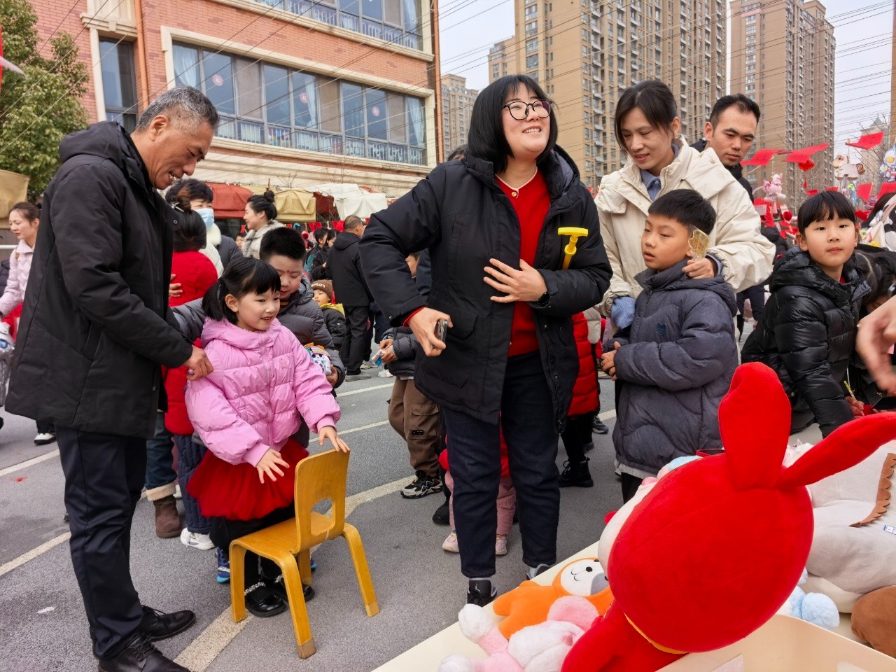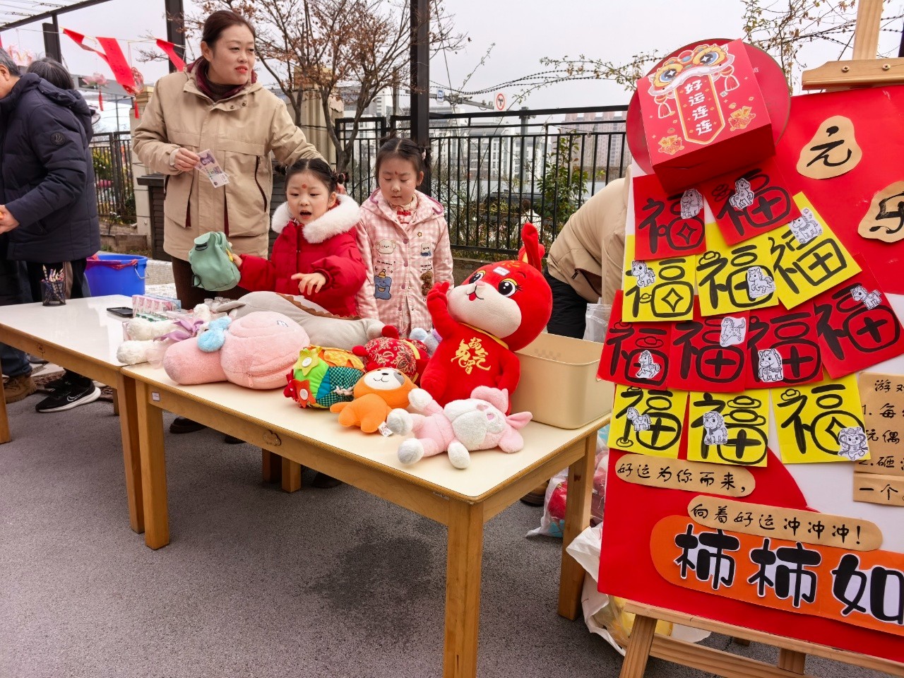 操场早被老师们布置成了热闹的民俗庙会,十几个摊位分散各处,每个摊位前都聚着大大小小的身影,欢笑声、加油声、欢呼声此起彼伏,把午后的空气搅得暖烘烘的。