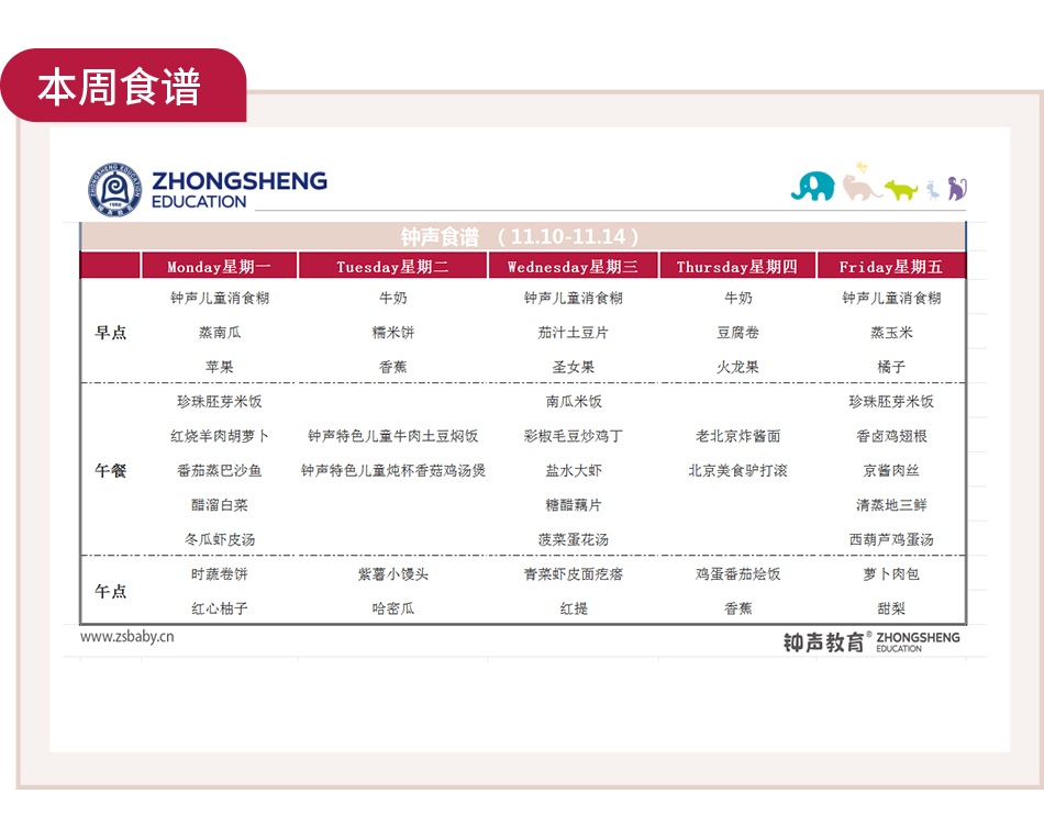 一周吃啥早知道|钟声快乐园