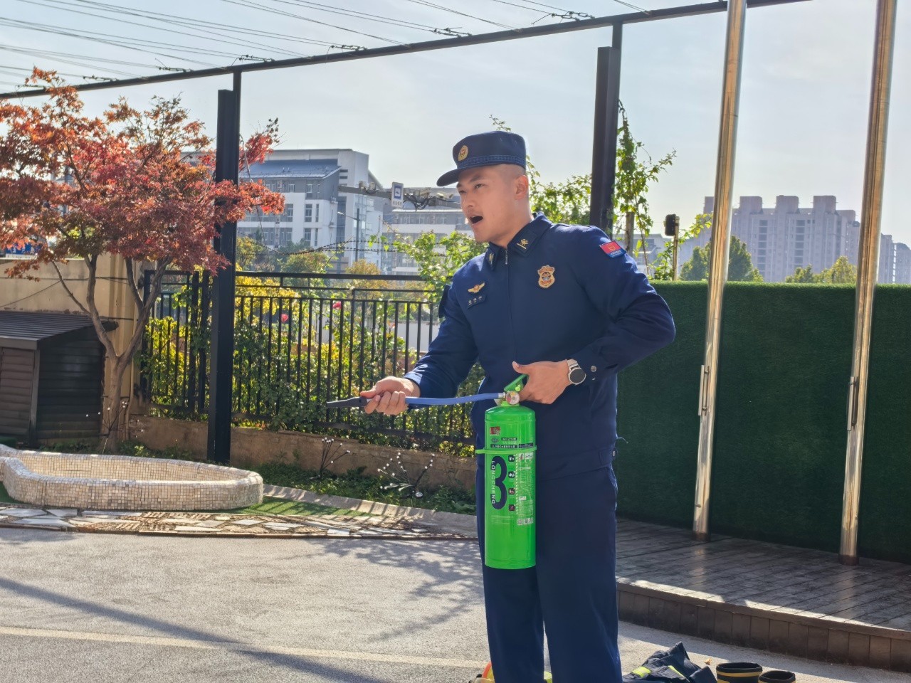 户外场地上,无齿锯、断线钳、水带整齐摆放。孩子们看得眼睛发亮。随后,在消防员叔叔的讲解下。孩子们知道了“原来保护大家需要这么多‘武器’!”好奇的小眼神里满是崇拜。