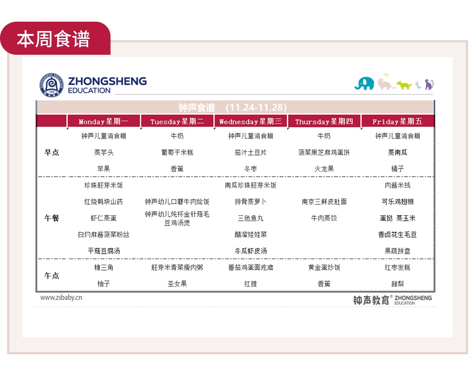 一周吃啥早知道|钟声快乐园