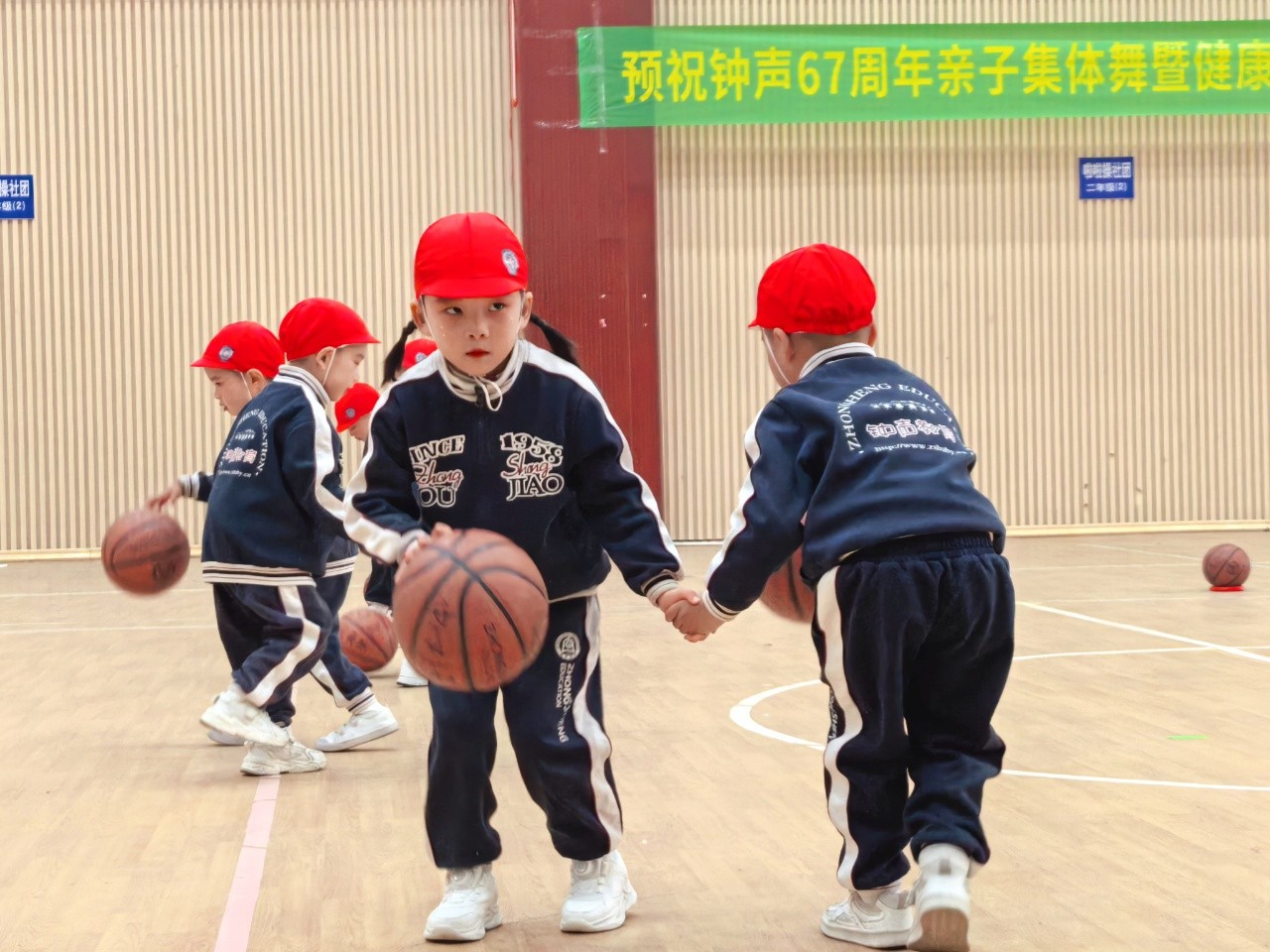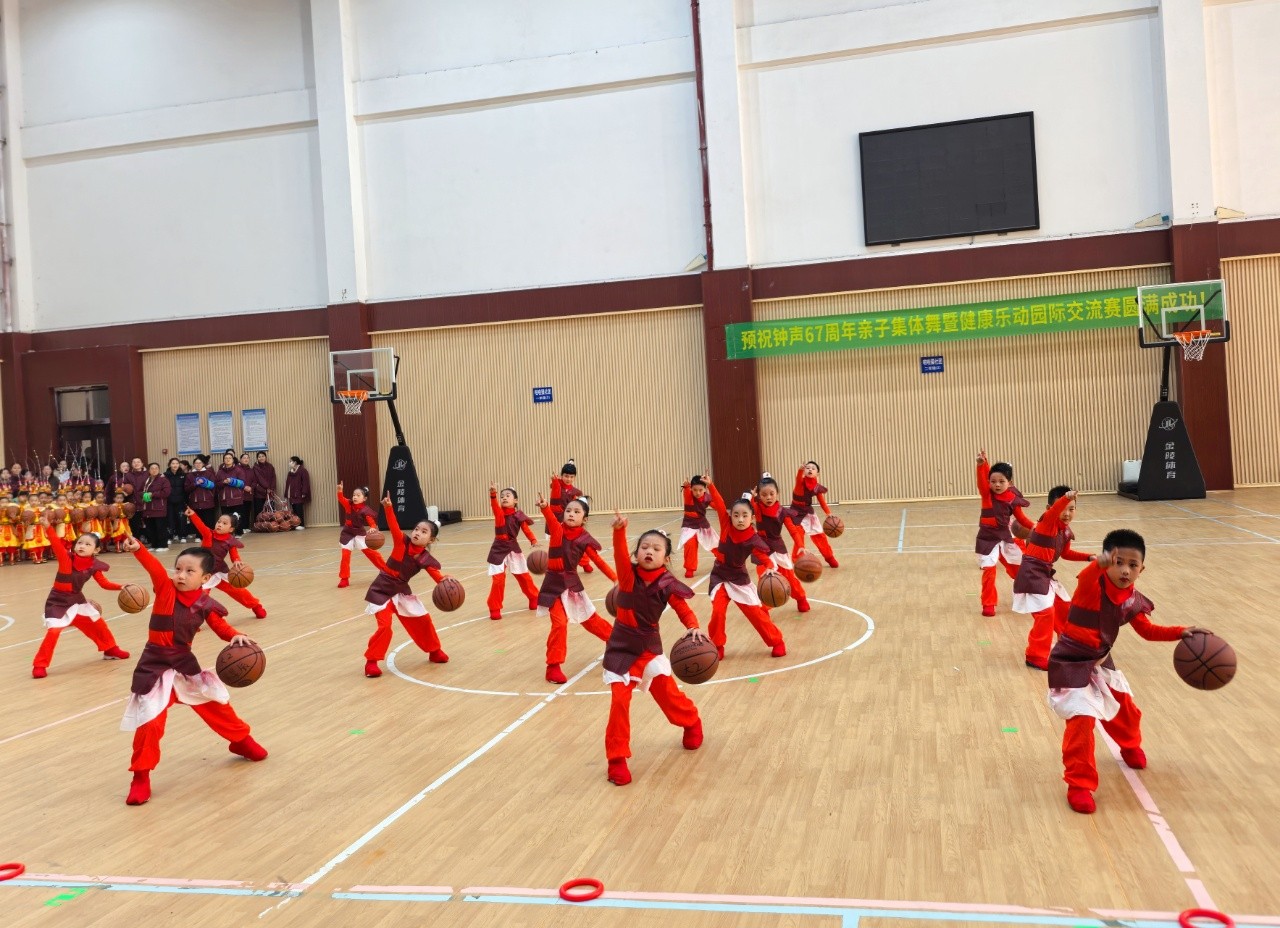 清脆的口哨指示音,洪亮有力、节奏整齐的健康乐动操,孩子们精气神十足,积极专注地投入。新颖的篮球创编动作、花式队列队形变化,无不体现了钟声大健康教育下幼儿阳光、乐观、奋进、团结的美好品质。