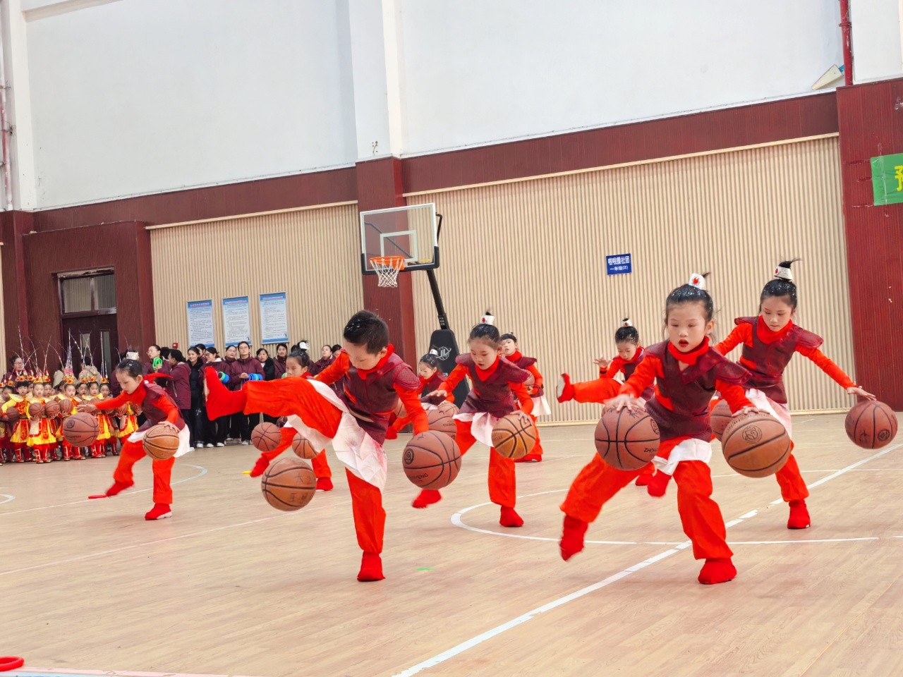 统一的队服、整齐的动作、灵动的控球,小球员们跟着节奏跳跃、运球,每一个眼神都透着专注,每一个动作都充满力量,用最纯粹的童真,点燃了全场的热情。