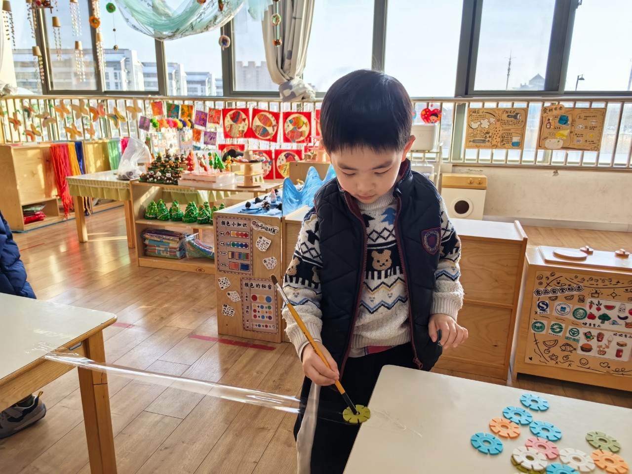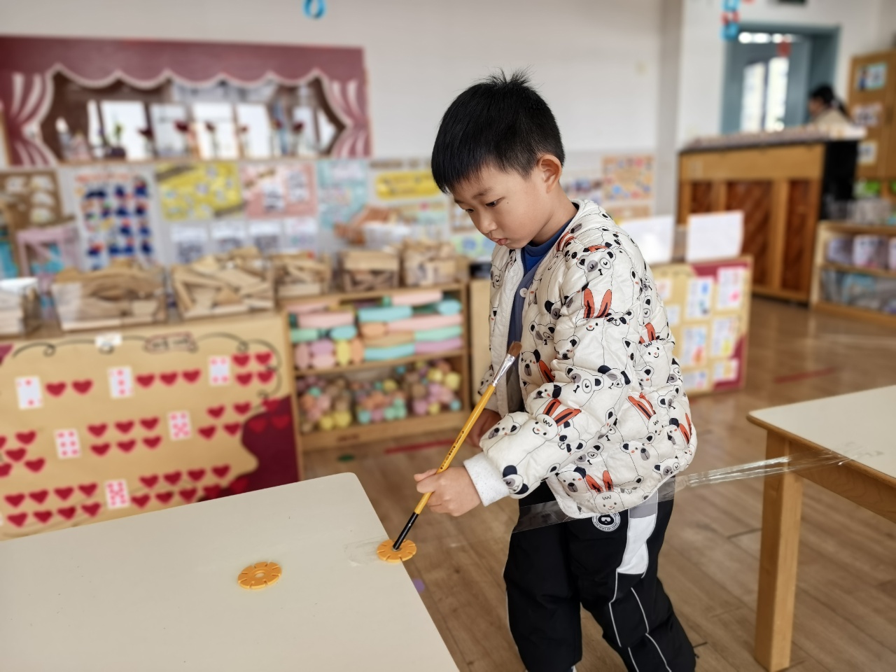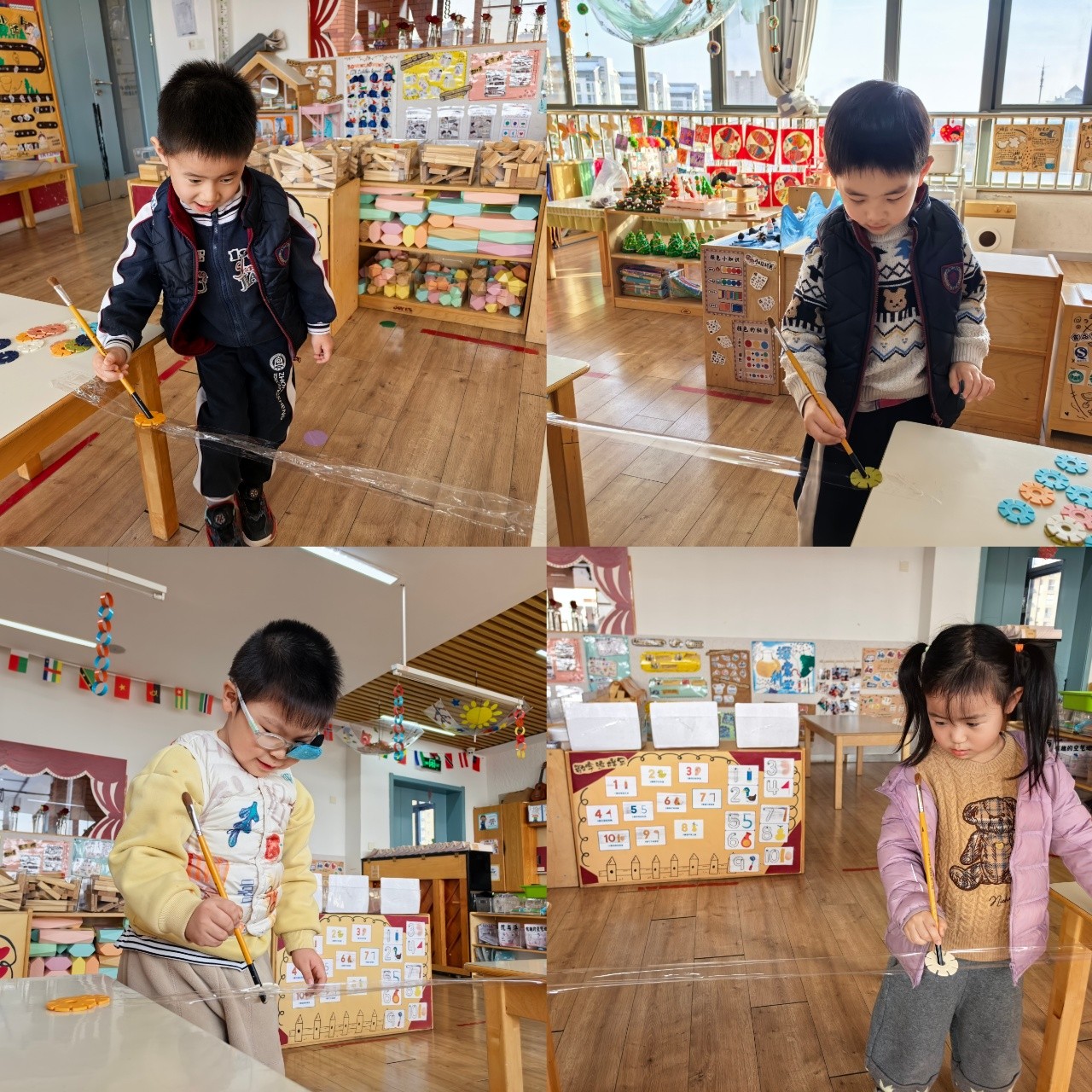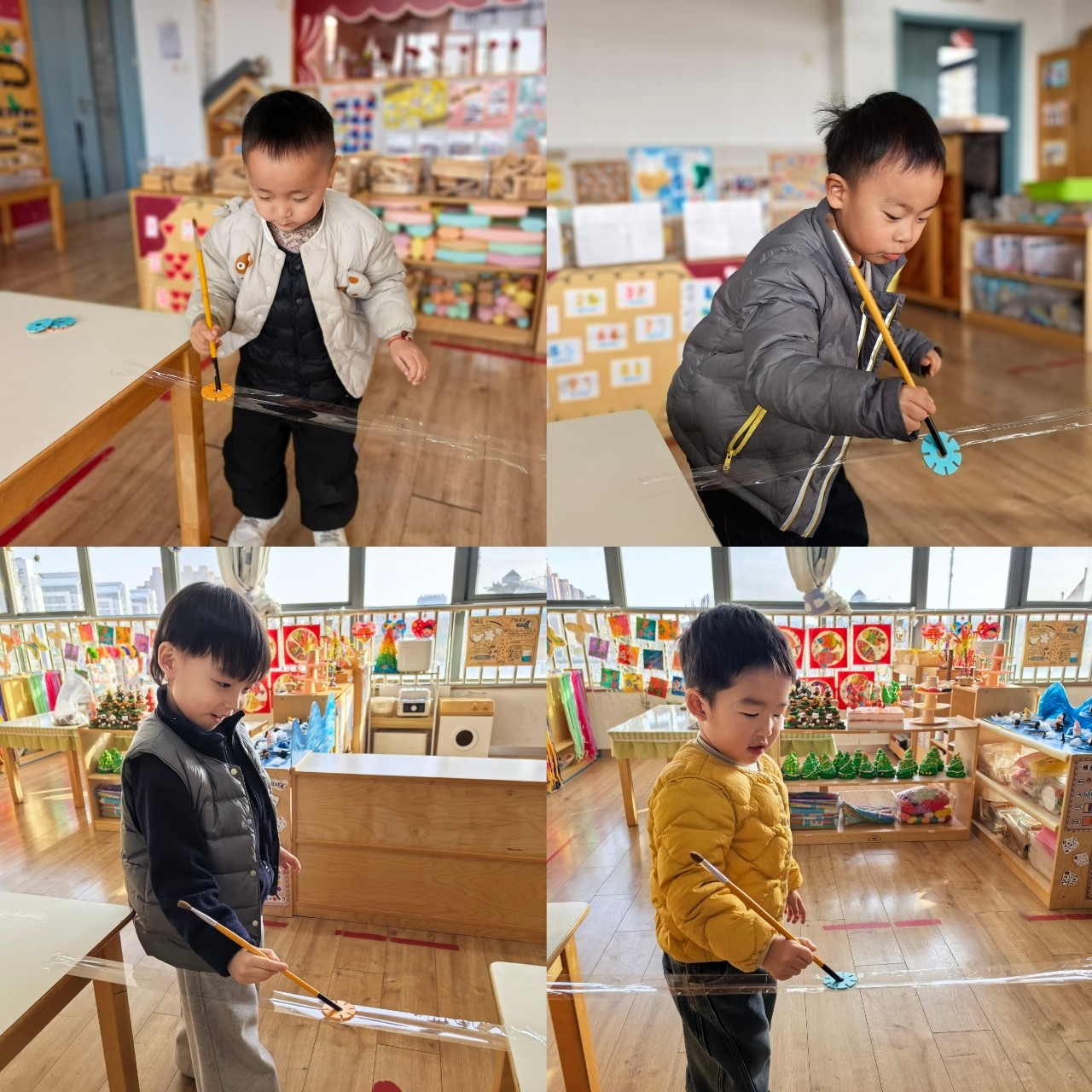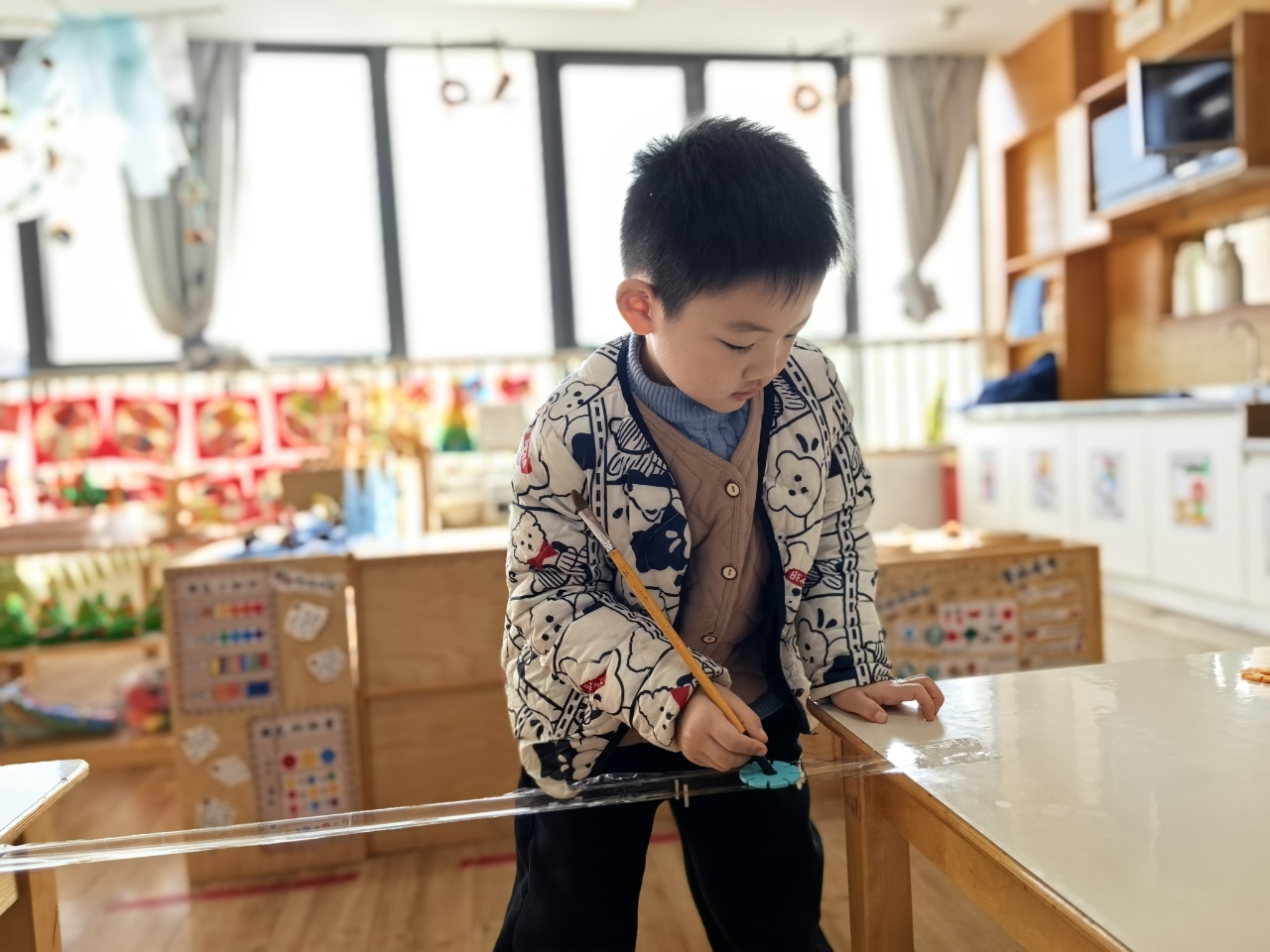 孩子的小手握住笔杆,尝试去“吸”住那片光滑的雪花片。力度太轻,雪花片会掉下;力度稍重,又可能将它推远。他们需要调整呼吸,稳住手腕,找到那个若有若无的、刚刚好的“平衡点”。