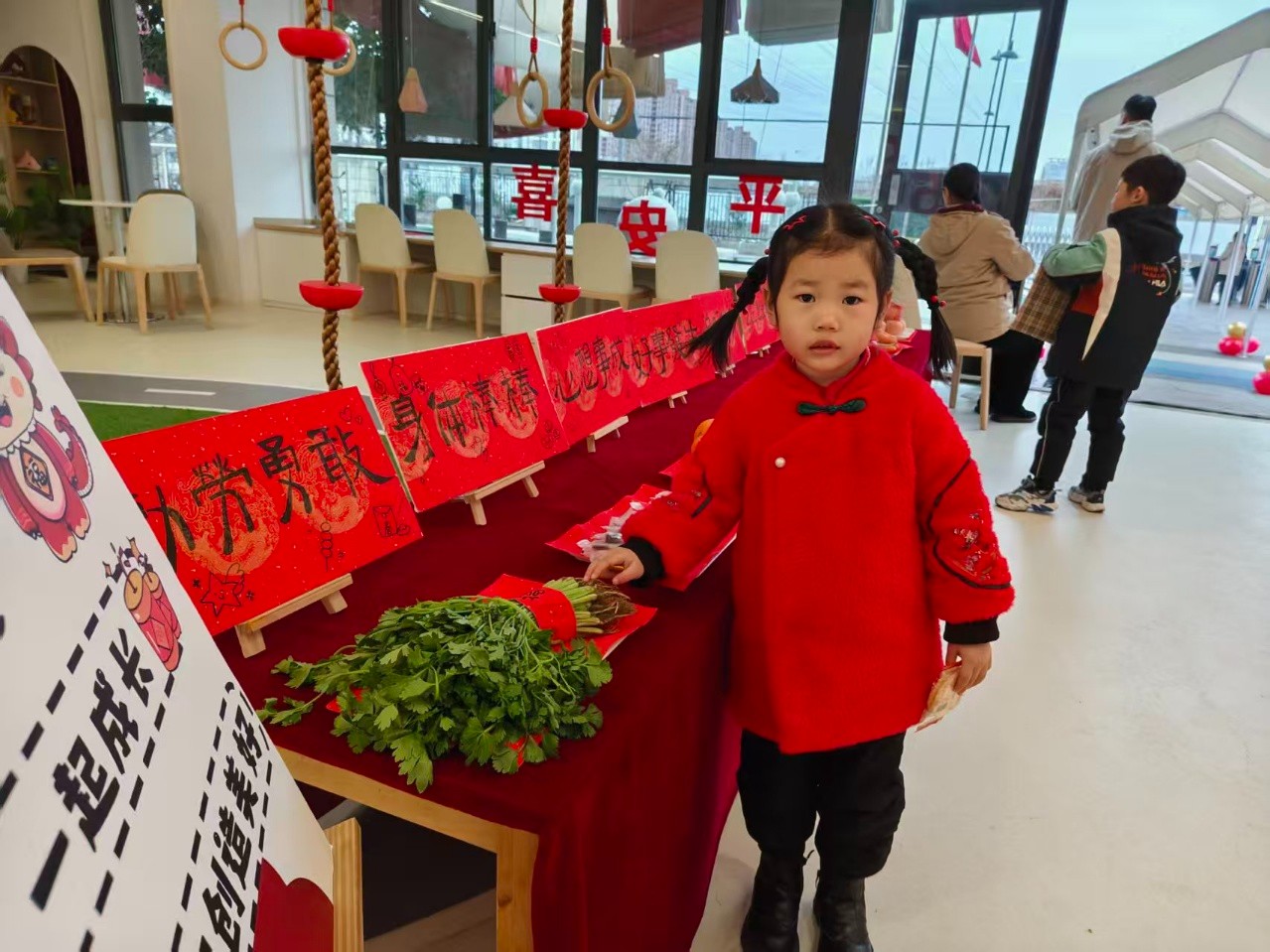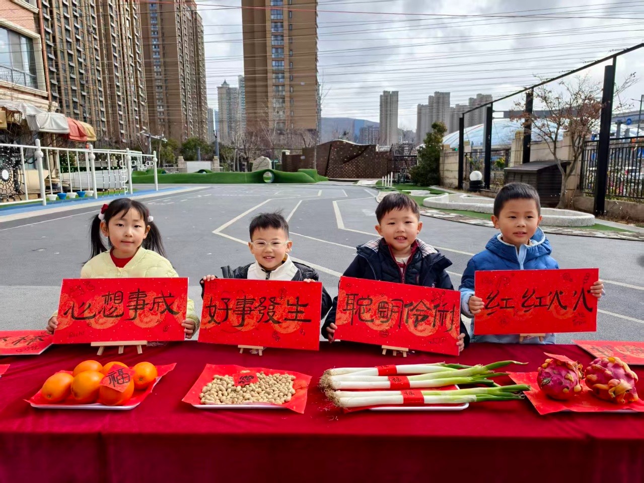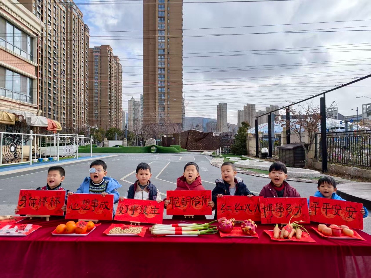 金灿灿的橘子摆在红布上,看着就让人心里亮堂。孩子们捧在手里,沉甸甸的,开心得合不拢嘴。橘子的“橘”与“吉”谐音,祝愿孩子们大吉大利,万事顺遂,每一天都甜甜美美。