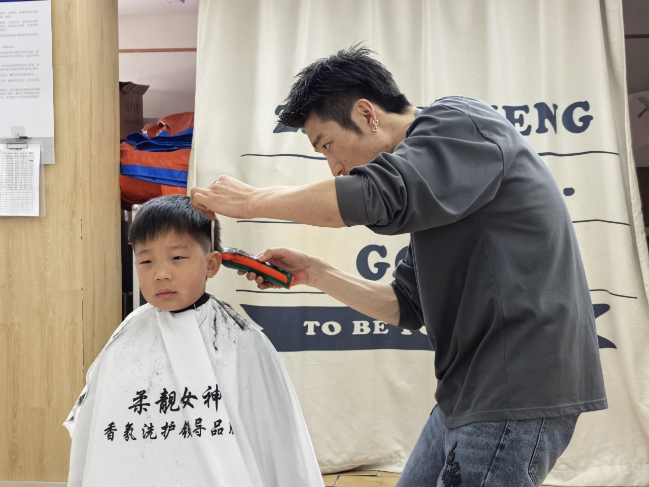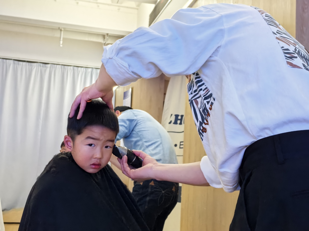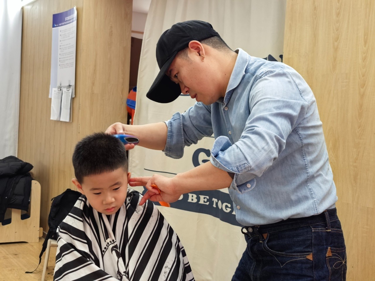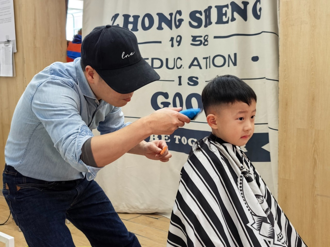 理发师叔叔动作轻柔、技术娴熟,一个个小脑袋变得清爽又可爱。有的宝贝勇敢端坐,化身“小绅士”“小淑女”;有的宝贝好奇张望,满眼都是对新发型的期待,享受着这份专属的春日仪式感。