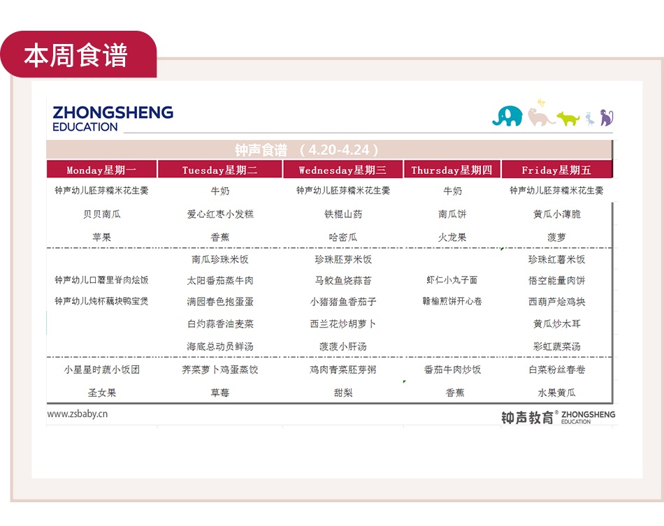 一周吃啥早知道|钟声快乐园